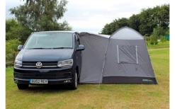 Dieses Modell wurde aus einem erstklassigen, ultraleichten 120 HDE-Gewebe hergestellt, das speziell für leichte, kompakte und optisch moderne Produkte entwickelt wurde, die sich problemlos in der mitgelieferten Tragetasche verstauen lassen, was sie perfekt macht, wenn Gewicht oder Platzbeschränkungen eine wichtige Rolle spielen. Das Material verfügt über eine Wassersäule von 3.000 mm und vollständig versiegelte Nähte, was bedeutet, dass es außerordentlich wasserdicht ist und Regen einfach auf der Oberfläche abperlt, bevor er abläuft. Die schlanken Designlinien und die klassische dreifarbige Lackierung passen zu jedem Wohnwagen oder Wohnmobil.